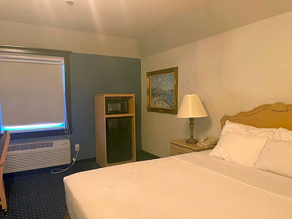The air-conditioned suite has 1 bedroom and 1 bathroom with a bath and a hairdryer. The suite features carpeted floors, a seating area with a flat-screen TV with streaming services, a tea and coffee maker, a wardrobe, as well as heating. The unit has 1 bed.